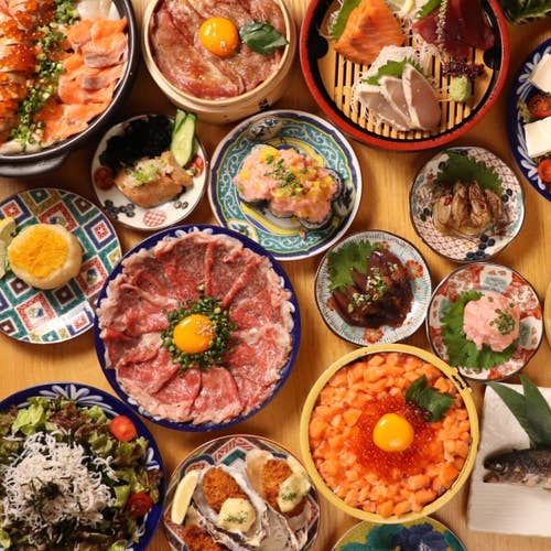 名物料理の贅沢にウニとイクラを盛った「痛風生牡蠣」、絶妙な火入れの「A5和牛の炙りユッケ」、ウニそっくりの見た目と味わいの「ウニ焼売」などこだわりの料理をゆったりと食事ができる完全個室席でお楽しみください。